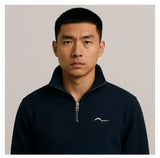 Crafted from a soft, heavyweight cotton-blend, this quarter-zip offers a structured feel without losing comfort. The high collar, premium zipper, and tailored silhouette create a polished look that works anywhere — from the city to the studio, from morning routines to late-night focus sessions.